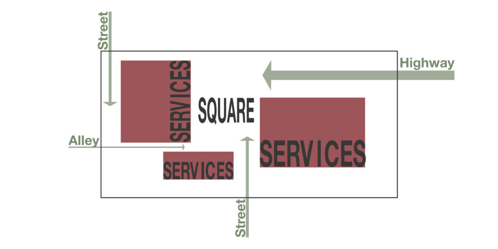 Imaginamos, portanto, que este lote fosse como uma cidade, levando-nos até aos limites consentidos, pensando na fragmentação das suas casas, as suas ruas estreitas e as suas amplas estradas, aos seus serviços, ao vazio das suas praças e aos lugares de convívio.