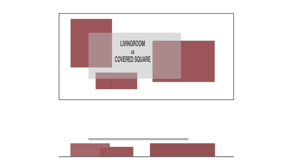 A sala, portanto, encarrega-se deste significado e só restava cobrir esta praça com uma grande cobertura, que a protegesse e lhe permitisse hospedar as suas atividades.